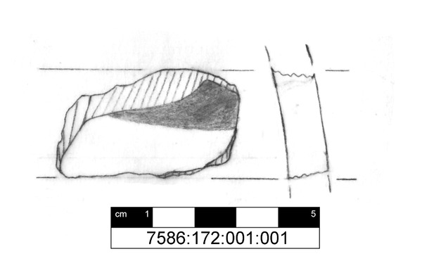 Die Bemalung (Munsell colour: 5YR 5/6) stellt eine leicht gerundete breite Linie dar. Wahrscheinlich handelt es sich um eine horizontale Linie.