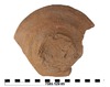 Fragment eines scheibengedrehten, grob gemagertem, insbesondere im Bodenbereich nicht durchgebrannten, kleinen Tellers mit abgesetztem Flachboden, ca. 20 Grad ansteigender Wandung und gerundetem Rand; Abdrehspuren auf der groben Bodenunterseite. Innen befinden sich am Boden Risse, die wohl beim Brand entstanden sind und ihre Ursachen im Abreissen des Stückes nach dem Abdrehen mit einer Schnur haben (s. Schälchenexperiment 2014). Im Kern grau, insbesondere im dickeren Bodenbereich.