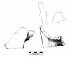 Ansatz des linken (?) Vorderbeines einer Stierfigur, das aufgrund seiner Ware und Oberflächenbehandlung (matter, rotbrauner Überzug) zusammen mit dem Fragment Fund:7587:033:007 zum selben Gefäß gehört haben könnte. Der Ansatz des Oberschenkel besitzt einen spitzovalen Querschnitt und ist innen hohl (3x2,5cm großer Hohlraum). Die Schenkeldicke beträgt an der dem Körper zugewandten Seite 2,2cm, an der Außenseite lediglich 1,2cm. Das Bein wurde separat geformt und an den Körper angefügt wie die Verstreichspuren und Fingerabdrücke an der Innenseite belegen. Oberhalb des Beinansatzes befindet sich ein spitzer "Knubbel", an dem der konkav ausgeformte Hals endet (vgl. Foto aus Museum Ankara). Außerdem ist im Brustbereich zwischen den Vorderbeinen eine 2,4 cm messende runde Öffnung vorhanden, die sich nach innen auf 1,2cm verjüngt.