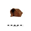 Fragment einer Kanne mit rotbraunem (Munsell: 10R 4/6) Farbüberzug; erhalten blieb ein einfach gerundeter, handgemachter Rand, an dem in rechtem Winkel ein zylinderförmiger Ausguß ansetzt sowie das Sieb, das sich am Ansatz des Ausgusses unmittelbar unterhalb des Ausgusses befindet; dünnwandige, feine sandgemagerte Ware; innen tongrundig (Munsell 5YR 7/4) vollständig oxidierend gebrannt; Ausguß bestoßen; Ware bislang singulär innerhalb der Keramik von Oymaagac;