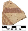 Die Bemalung (Munsell colour: 10R 4/4) stellt eine horizontale breite Linie dar, von der oberhalb ein doppeltes diagonales Leiterband abgeht.