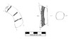 Horizontalhenkel. Die Keramik besteht aus hellbraunen Ton (Munsell color: 7.5YR 7/3) mit mittelviel mineralischen Einschlüssen mittlerer Größe, darunter dunkle Steinchen und sehr wenige Kalksteinpartikel. Die Oberfläche ist verstrichen. Die dunkel rotbraune Bemalung (Munsell color: 7.5YR 3/3) besteht aus einer breiten Linie, die an der äußeren Henkelaußenseite entlang läuft und drei schmalen und kurzen quer verlaufenden Linien, die in größeren Abständen angebracht sind.