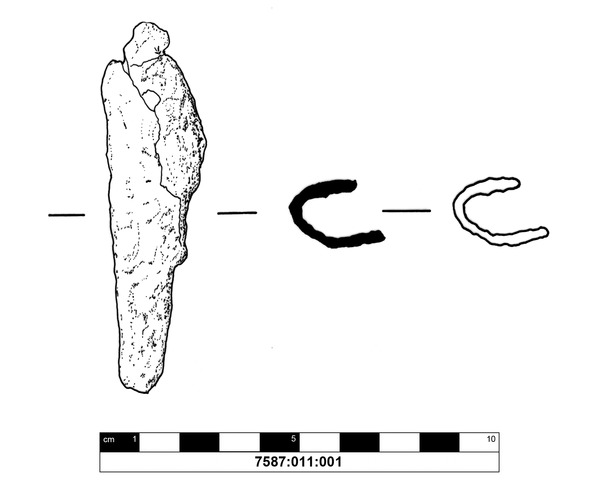 5 Blechfragmente aus Bronze unterschiedlicher Größe. Alle Fragmente besitzen eine längliche Form und sind entlang der Längsachse gewölbt. Das größte der Fragmente ist zusätzlich leicht gebogen. Die ursprüngliche Funktion der Objekte ist nicht mehr eindeutig ersichtlich, es könnte sich jedoch um Teile eines Beschlages handeln, z.B. ein Messergriff o.ä.