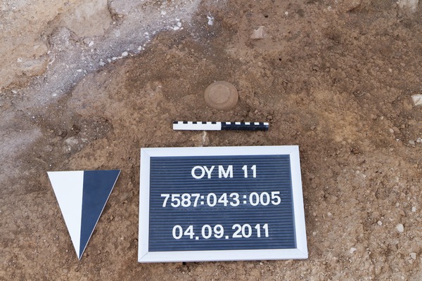 Vollständig erhaltenes, scheibengedrehtes Miniaturschälchen aus gebranntem Ton (Munsell: 5YR 6/6). Das Stück besitzt einen flachen Standboden, auf welchem noch Reste des Abdrehprozesses von der Töpferscheibe zu erkennen sind. Aufgrund dessen steht das Schälchen nicht gerade, sondern "wackelt". Die Wandung verläuft nach außen biegend und geht in den oben abgerundeten Rand über. Die Gefäßoberfläche ist verstrichen ("Selfslip") und es sind an Innen- und Außenseite nur noch wenige Drehspuren zu erkennen. Im Inneren des Gefäßes befindet sich ein nur sehr grob verstrichenes, nicht beseitigtes Tonklümpchen.