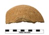 Fragment einer scheibengedrehten Schale aus gebranntem Ton (Munsell: 5YR 6/6). Erhalten ist nur ein sehr kleiner Teil ders leicht abgesetzten Standbodens. Die Wandung verläuft leicht nach außen biegend und verdickt sich minimal zum Rand hin. Dieser ist oben abgerundet. Innen und Außen sind Drehspuren auf der Gefäßoberfläche zu erkennen. Die Brandführung ist unregelmäßig; während die Gefäßoberfläche einen braunorangen Farbton besitzt, weist der Kern eine graue Farbe auf. Erhalten ist etwas mehr als ein Viertel des ursprünglichen Gefäßes.