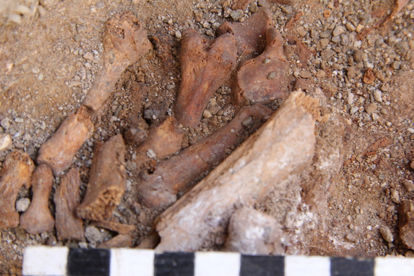 2 rostige Fragmente eines nahezu vollständig erhaltenen Fingerringes aus Eisen mit einer bekrönenden runden Scheibe mit 0,2cm breitem rundlichen Rahmen, in den ursprünglich wohl eine runde Bronzescheibe eingesetzt war (analog zu Fingerring 7585:010:017)