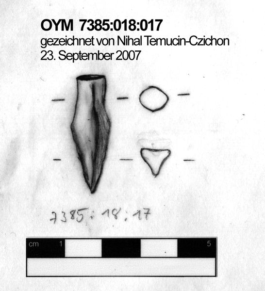 Dreiflügelige, sog. "Skythische Pfeilspitzen" sind bereits ab dem 7.Jh. v.Chr. belegt, kommen aber auch noch in röm. Zeit vor. Eine gute Parallele findet sich in einem römischen Friedhof bei Gordion, Expedition 49, 2007