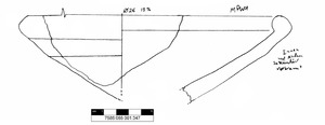 Randfragment einer dicken Schalen mit Innenrand Außen und innen sekundär gebranntArchäometrie: p-XRF 2017, Dünnschliff 2016-27
