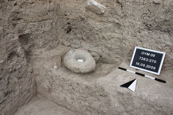 -Tiergang im äußersten Nordwesten des Quadranten -hellgraues, sehr weiches Bodenmaterial -großer Lehmziegel / 3 Steine / ein Tierskelett (großer Nager?)