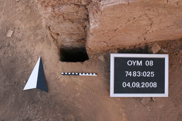 7483:025 = rechteckiges Balkenloch an Süd-West-Ecke von LZ-Block 7483:019.Maße: ca. 10 cm x 20 cm