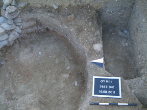 -graubraunes, lehmiges Material-sehr wenige Einschlüsse*-vereinzelt rotverbrannte Lehmziegelbrösel-keine Knochen