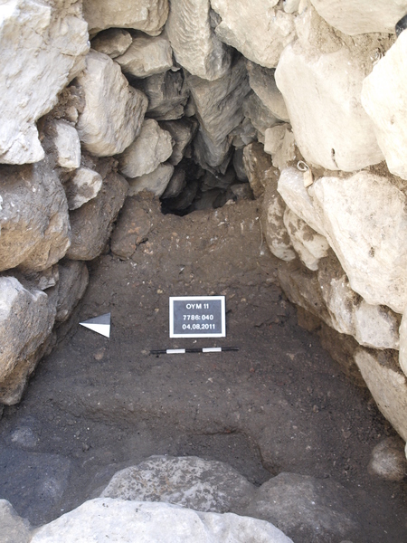 Locus [40] a dark brown layer, is about 45 cm thick.This is the layer with the surplus of charred seed/grain .The bottom of this locus is formed by two steps of the long stair. This are steps number 13 and 14.